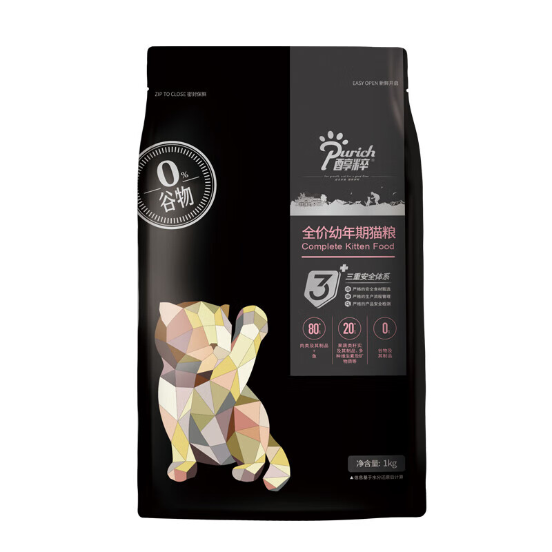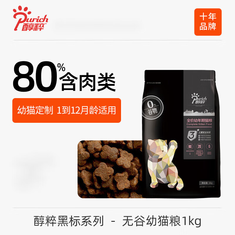 醇粹黑标系列猫粮纯粹幼猫猫奶糕幼猫粮幼猫专用1到3月4到12月 幼猫 1kg 1袋 1kg /包