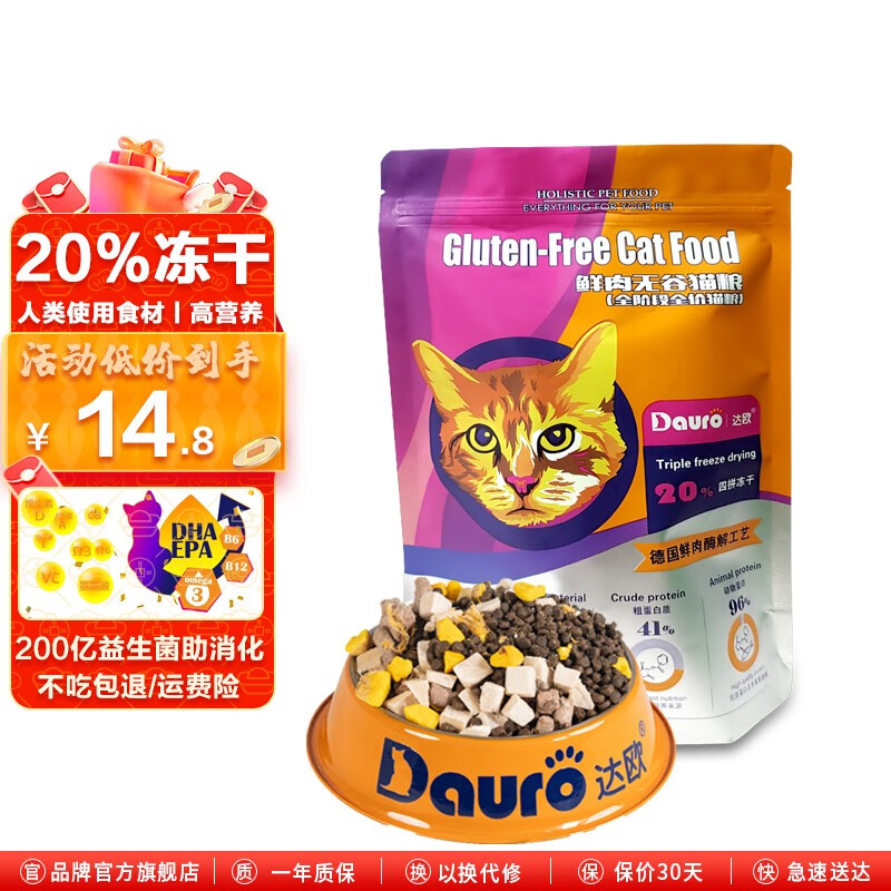 达欧(Dauro)全价无谷冻干猫粮 成猫幼猫高蛋白低敏通用粮 全价猫粮200g试吃装【不吃包退】