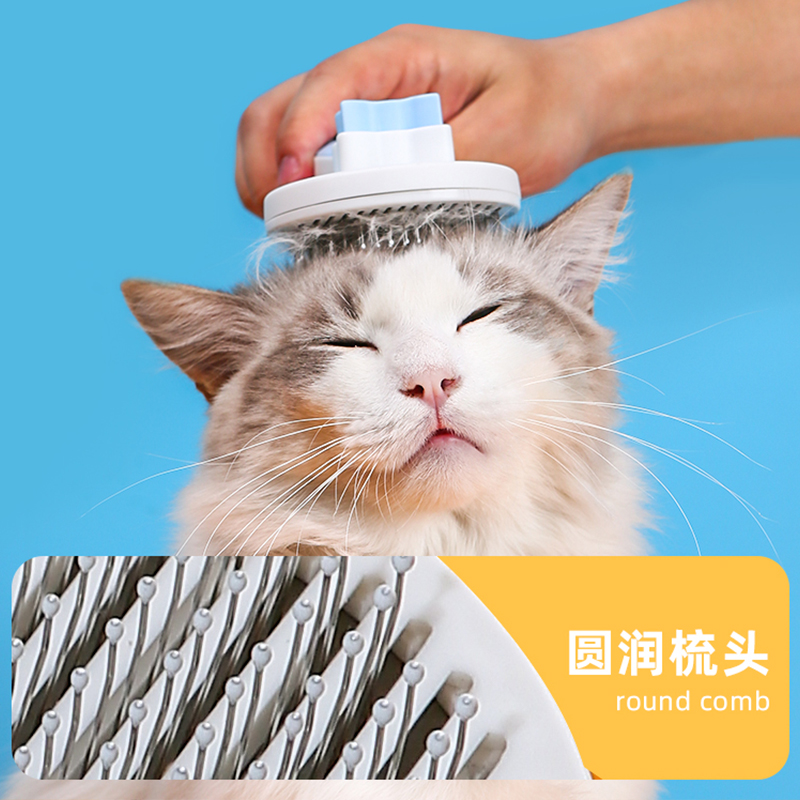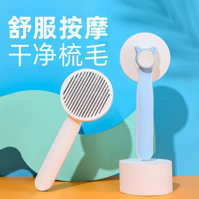 宠翰 宠物一键自动除毛梳 宠物钢针梳圆头猫耳梳狗狗一键自动除毛梳猫刷