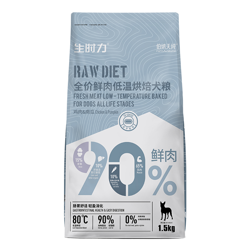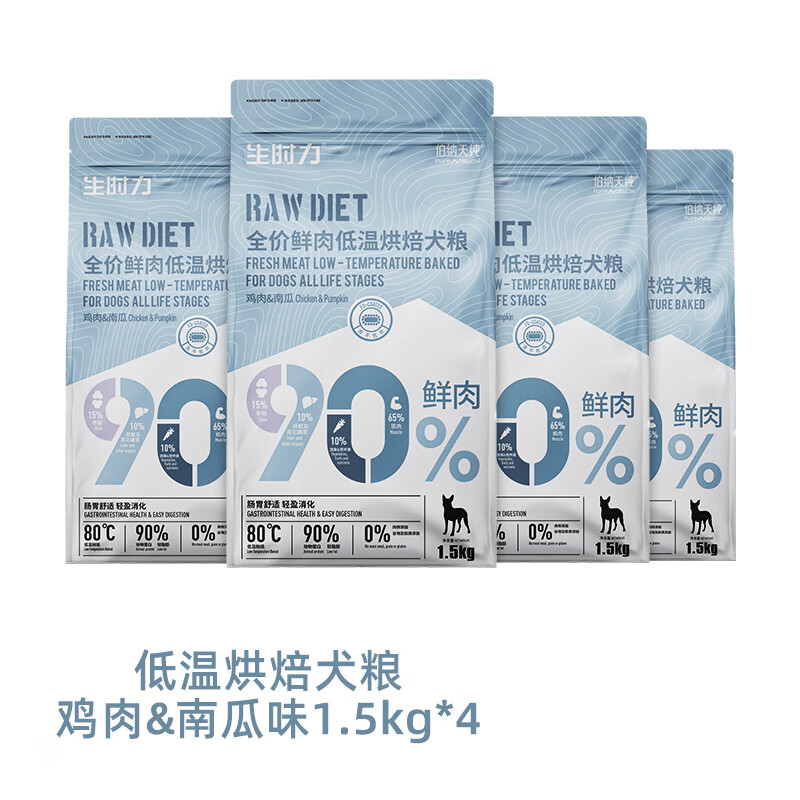 伯纳天纯狗粮0谷全阶段鲜肉低温烘焙粮6kg成幼犬鸡肉南瓜配方主粮金毛柯基(实发1.5kg*4,含附件1.5kg*3)