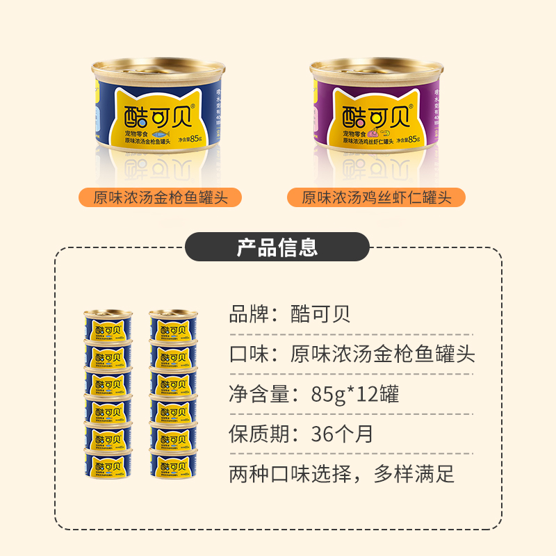 酷可贝原味浓汤金枪鱼猫零食猫罐头85g*12罐