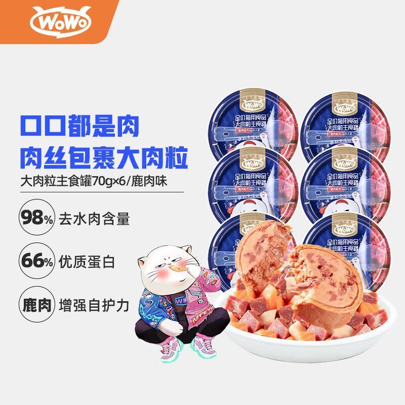 喔喔(WOWO)猫罐头大肉粒主食罐头湿粮成猫幼猫猫咪零食罐头补水猫咪罐头 70g大肉粒主食罐-火鸡羊乳味 4罐