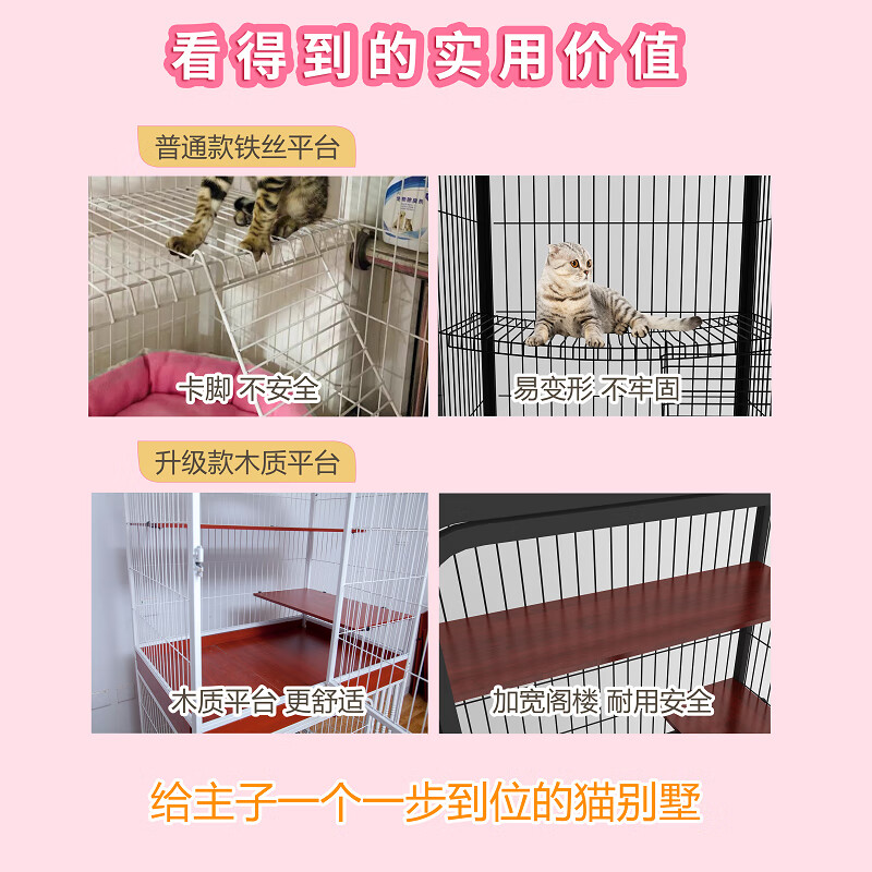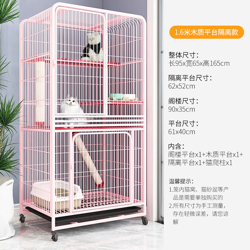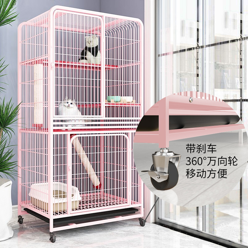 新越昌晖猫笼子猫别墅四层猫柜 宠物猫咪房子猫窝猫屋 幼猫通用猫舍95*65*165cm 粉色XY-ML08F
