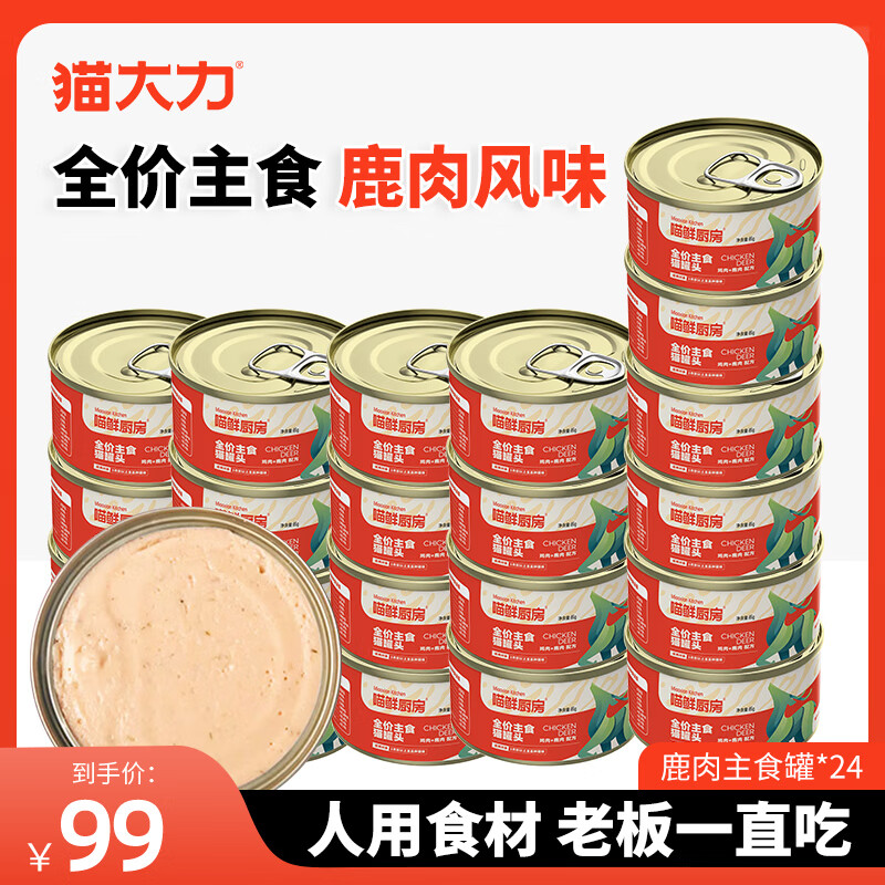 猫大力猫罐头宠物零食猫用浓汤大口肉猫湿粮成幼猫全价通用罐头营养增肥 鹿肉主食罐*24罐