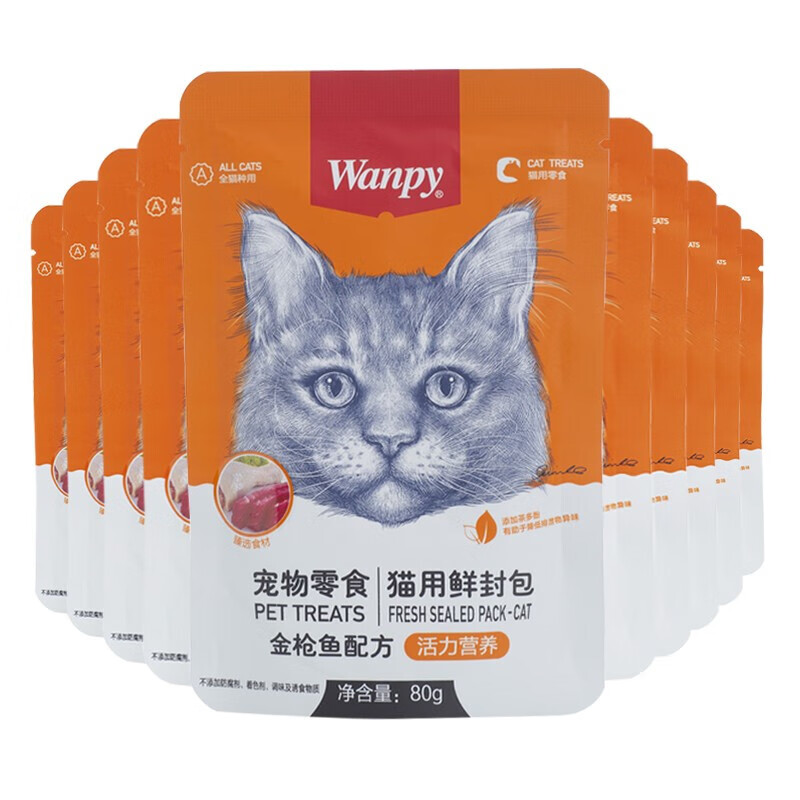 顽皮(wanpy)猫咪鲜封包活力营养宠物猫粮肉粒包猫湿粮猫罐头整盒 金枪鱼配方80g*10