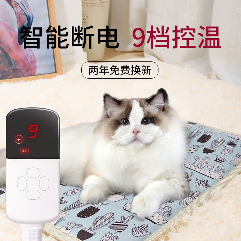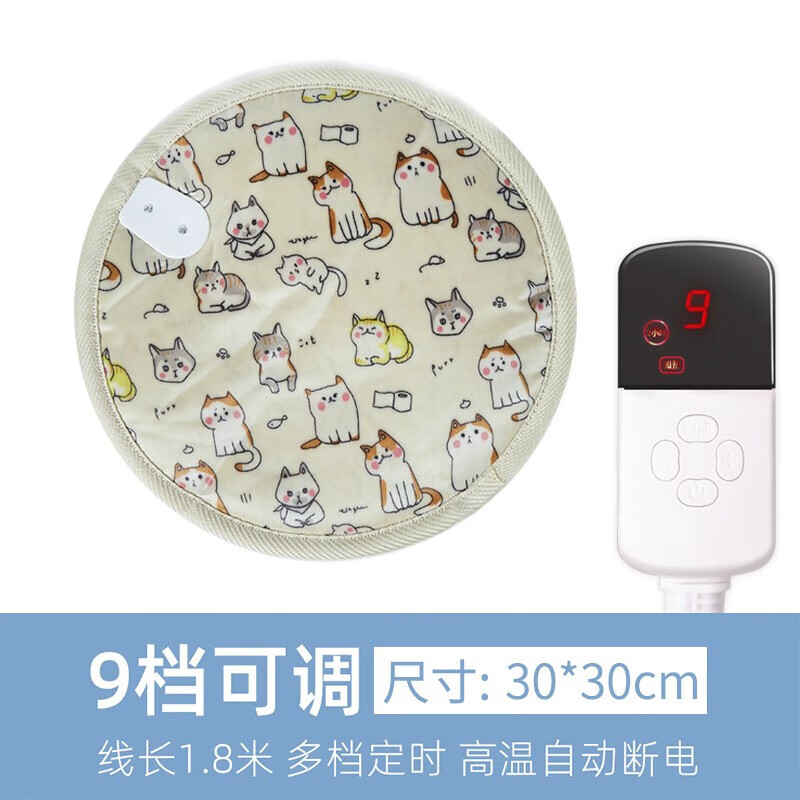 调皮窝宠物电热毯猫用恒温定时加热冬季保暖睡垫狗窝猫窝垫子电褥 米猫9档控温定时圆形30*30CM