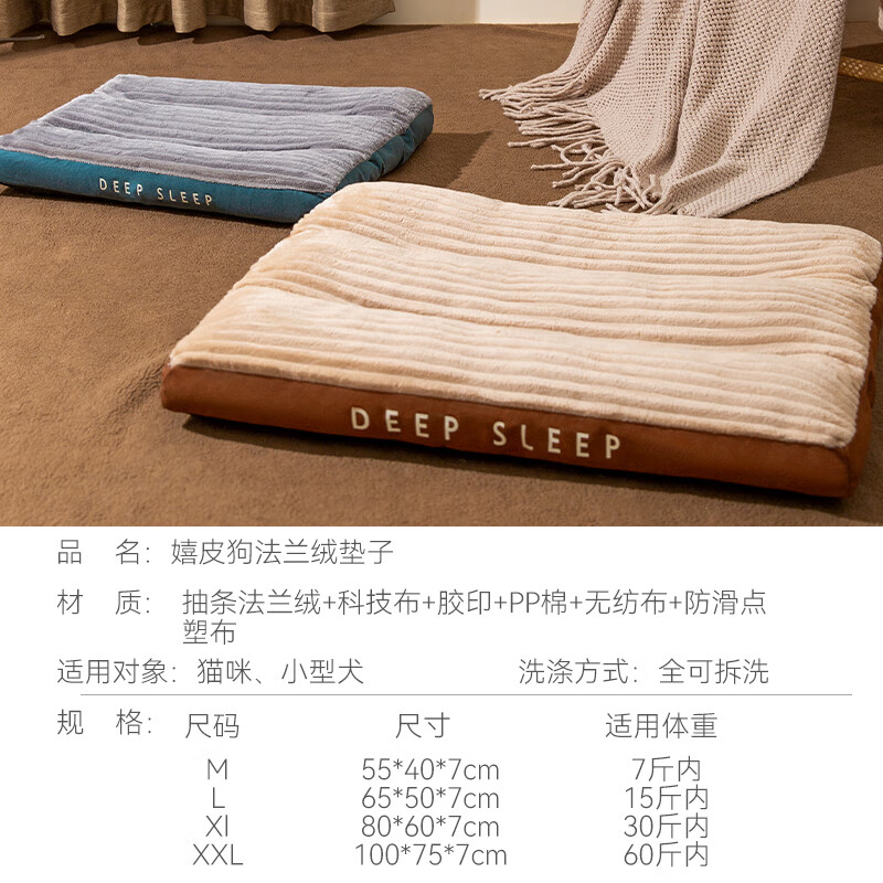 嬉皮狗(hipidog)猫窝四季通用猫垫子睡觉用可拆洗睡垫夏天凉窝猫咪床夏季宠物狗窝 抽条法兰绒 超大号:(建议60斤内宠物