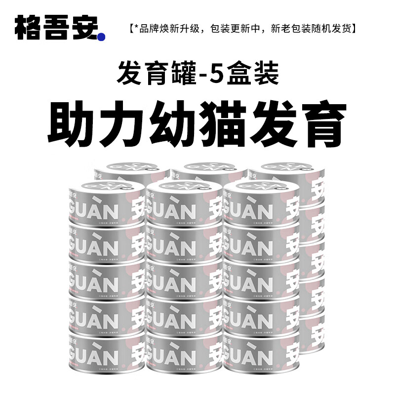 格吾安 安系列发育罐全价鲜肉幼猫主食罐6罐*5盒【实发5盒(含附件)】