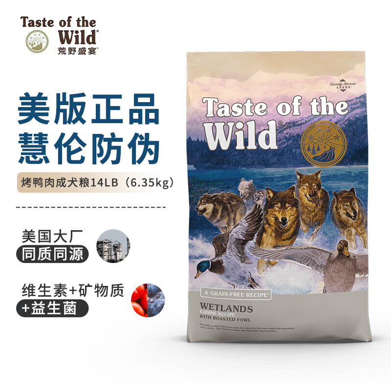 荒野盛宴烤鸭肉和烤鹌鹑肉和烟熏火鸡肉配方(成犬粮)14磅/袋(6.35kg)