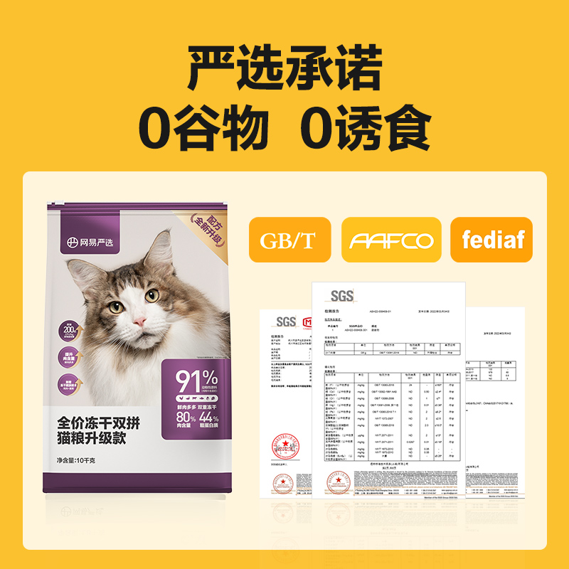 网易严选 全价冻干双拼猫粮 居家宠物主粮幼猫成猫全价天然无谷粮猫咪食品 10kg