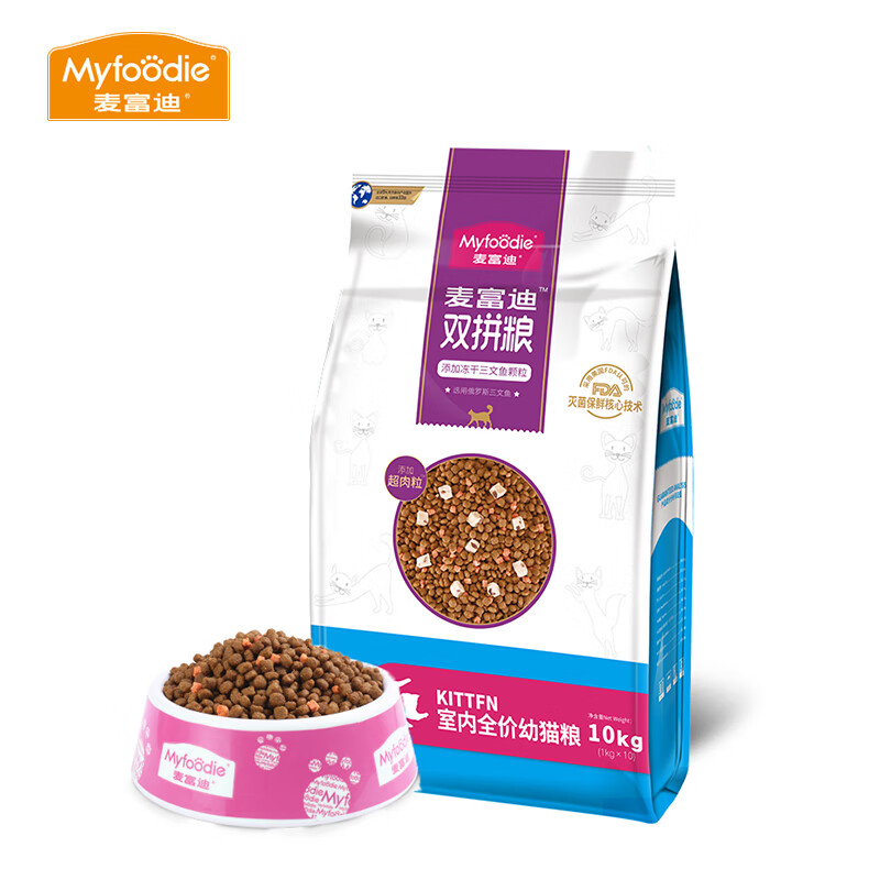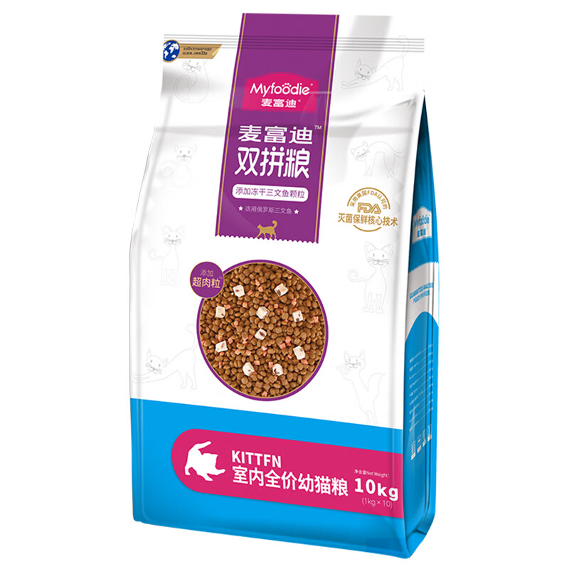 麦富迪(Myfoodie)麦富迪猫粮 冻干双拼幼猫成猫营养发腮猫咪主粮 经典款幼猫粮10kg 升级款|成猫粮1.7kg