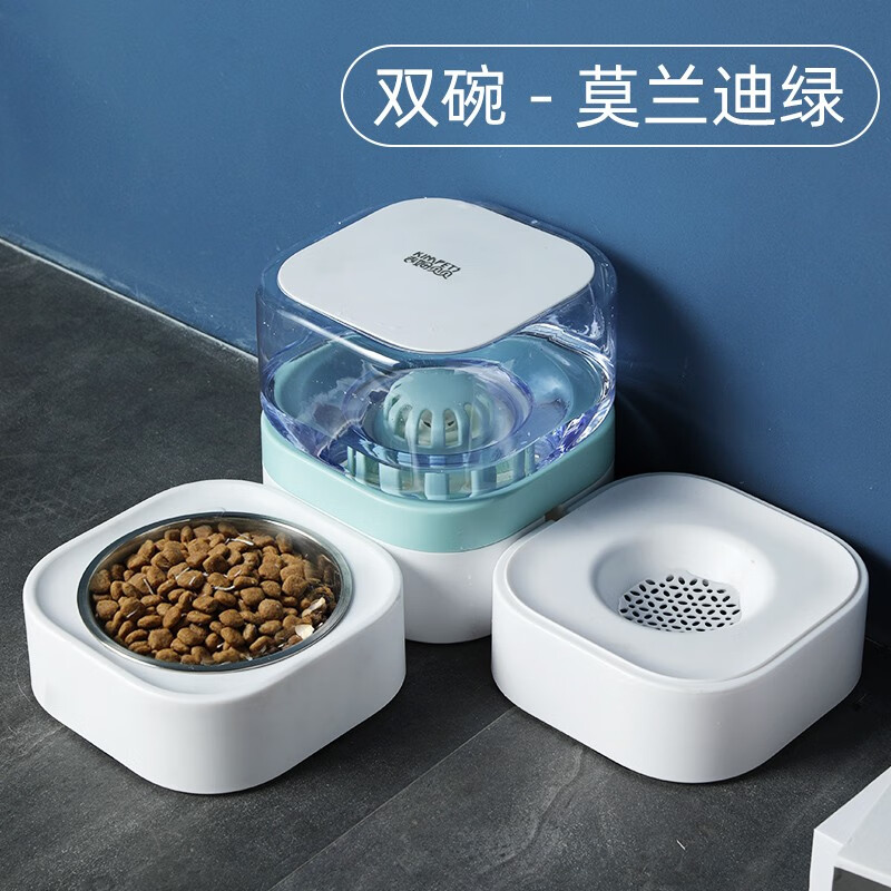 KimPets猫咪饮水机不插电流动喝水器狗狗自动喂水喂食猫防湿嘴打翻宠物碗 双碗-莫兰迪绿 M-中型