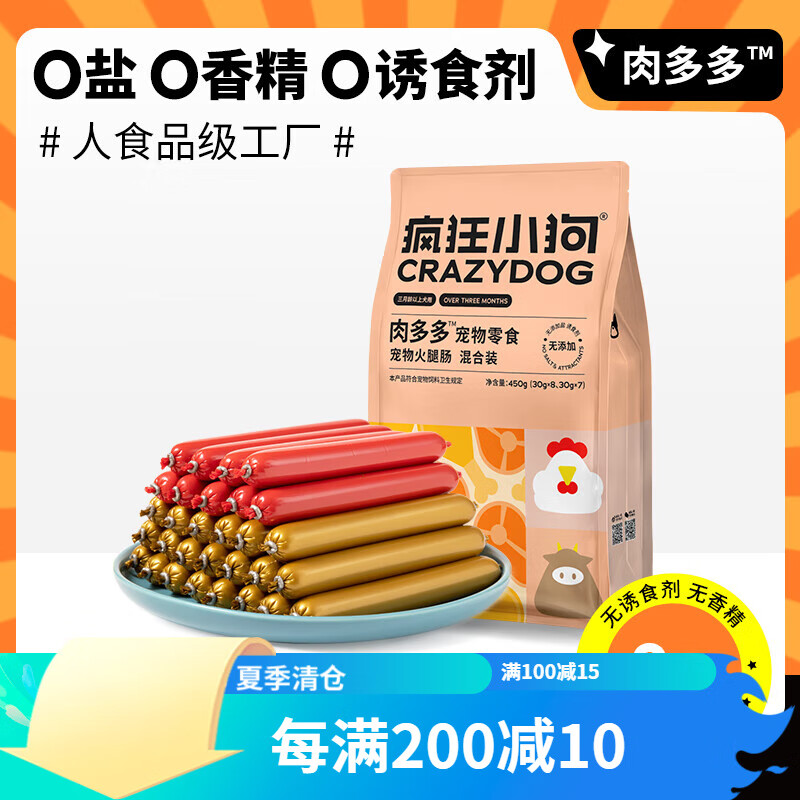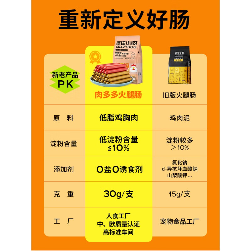 疯狂小狗狗火腿肠肉多多无盐泰迪狗吃的专用宠物香肠小型犬狗零食 新升级混合味【0盐0诱食剂0 1包