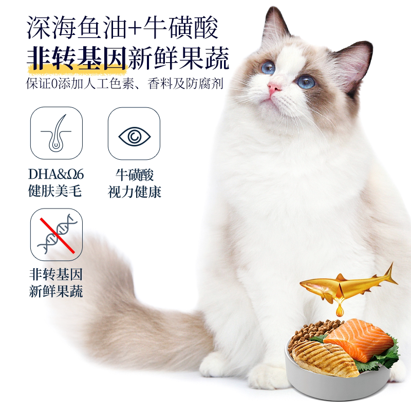 特芙进口鲜肉无谷猫粮布偶专用软便克星美毛成猫低敏全价幼猫主粮