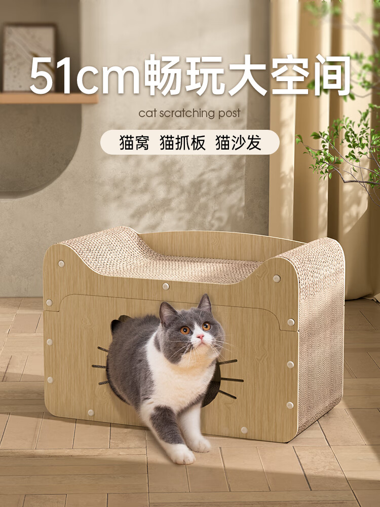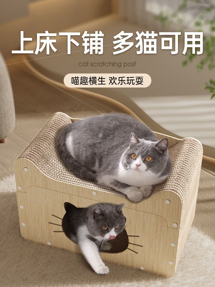 猫抓板窝耐磨不掉屑立式猫爪板耐抓双层猫窝纸箱猫咪沙发防抓玩具 [特大号大脸猫款]20斤内可用