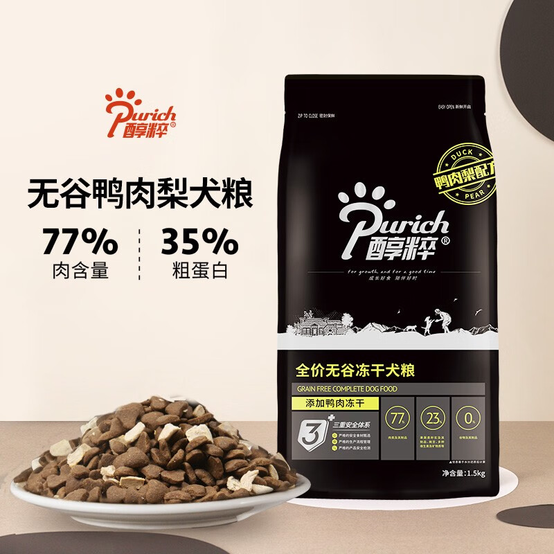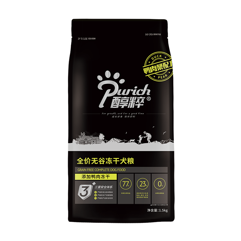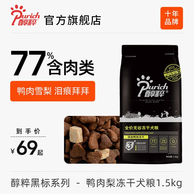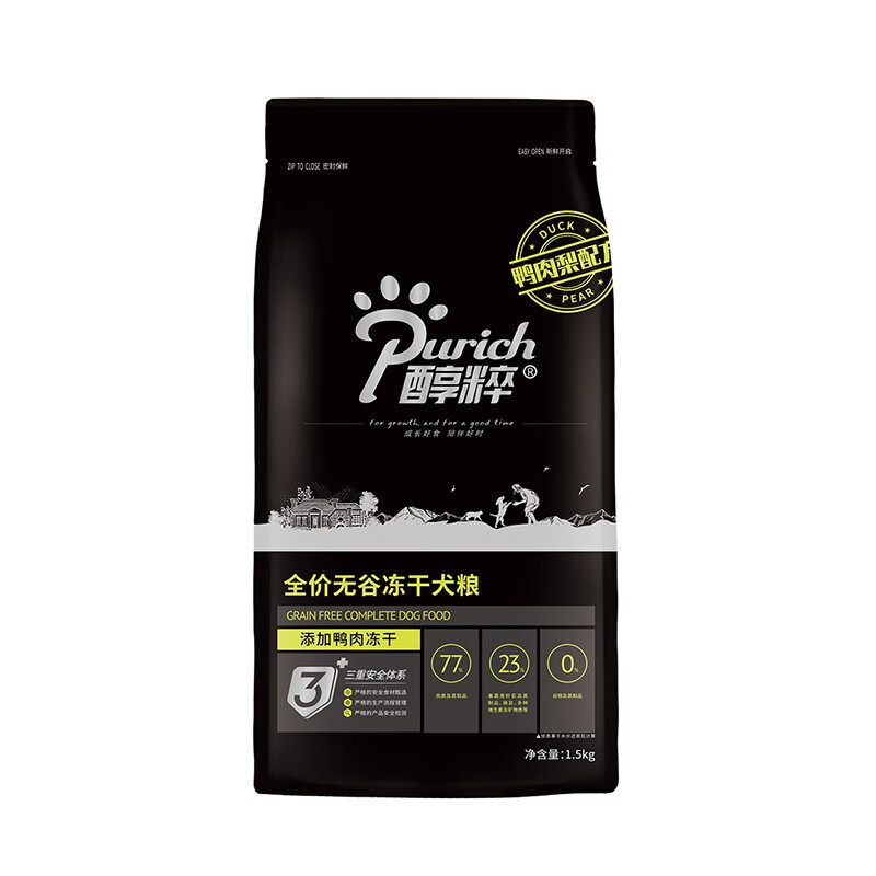 醇粹狗粮 黑标狗粮冻干大中小型全价犬粮成犬幼犬纯粹狗干粮 鸭肉梨全犬种1.5kg
