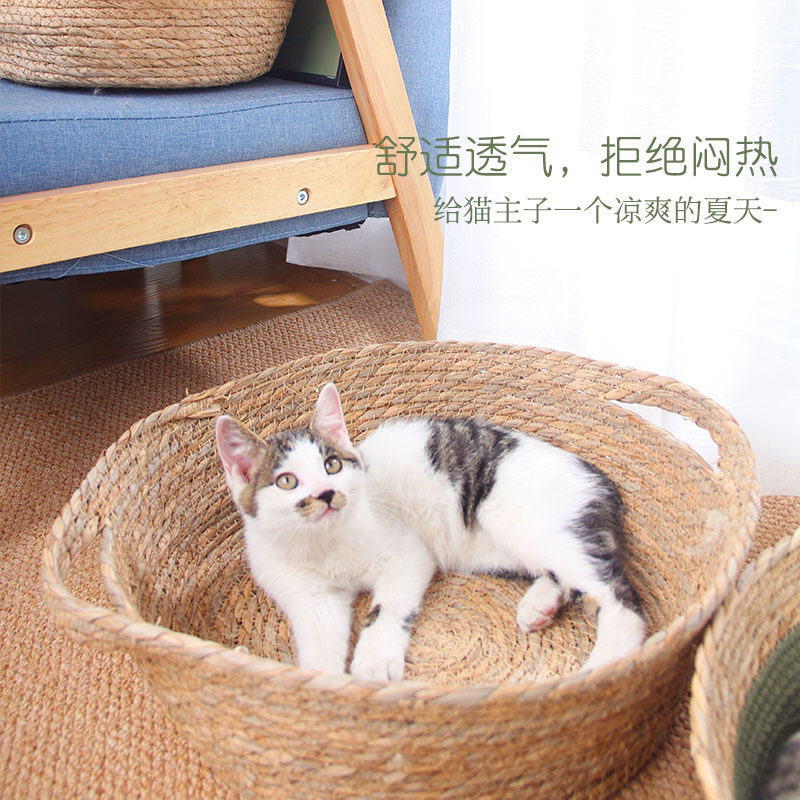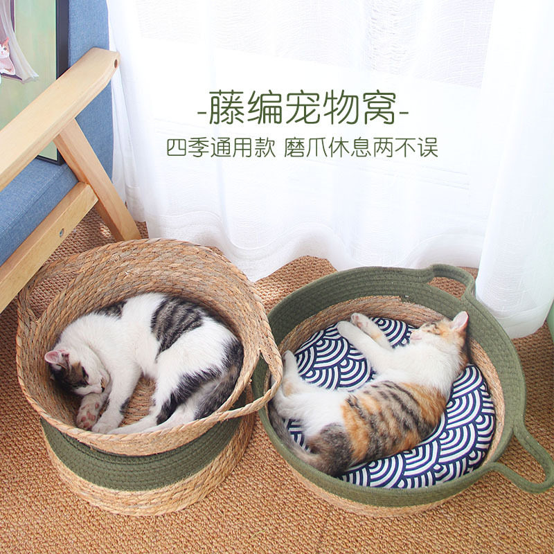 藤编猫窝冬季四季通用网红蒲草垫子保暖猫抓板狗窝宠物床猫咪用品
