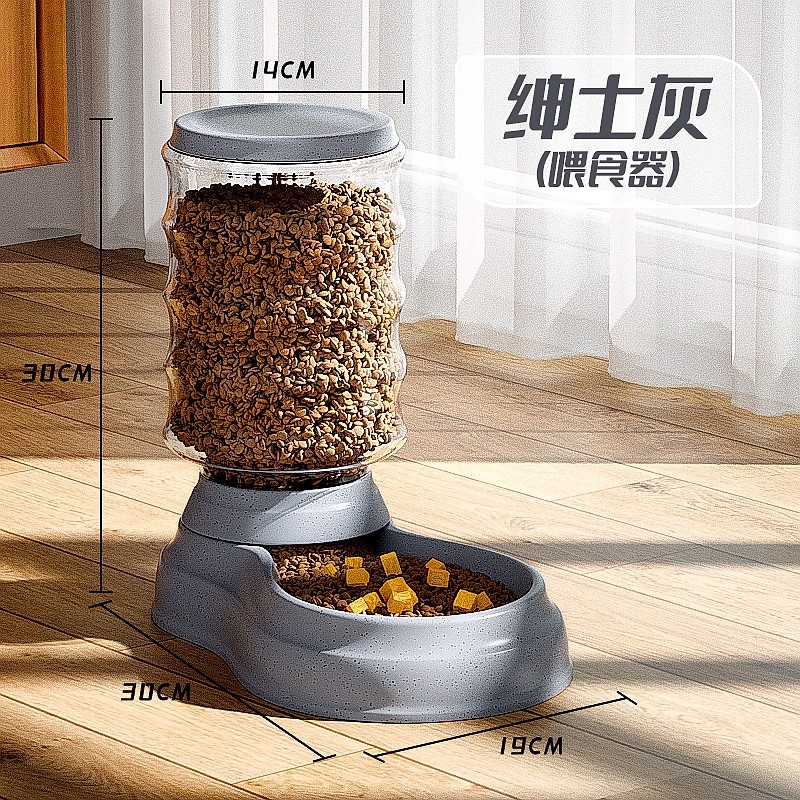 华元宠具(hoopet)超大容量宠物自动喂食器大型犬狗狗饮水机狗盆猫碗喂水猫咪投食器 【老款】喂食器3.5L 绅士灰