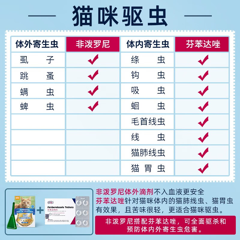 新宠之康宠物猫咪驱虫药体内外同驱滴剂非泼罗尼打虫药去虱子除跳蚤螨虫蜱虫肠道线蛔绦虫猫胃肺线虫吸虫 猫通用体内驱虫6片装