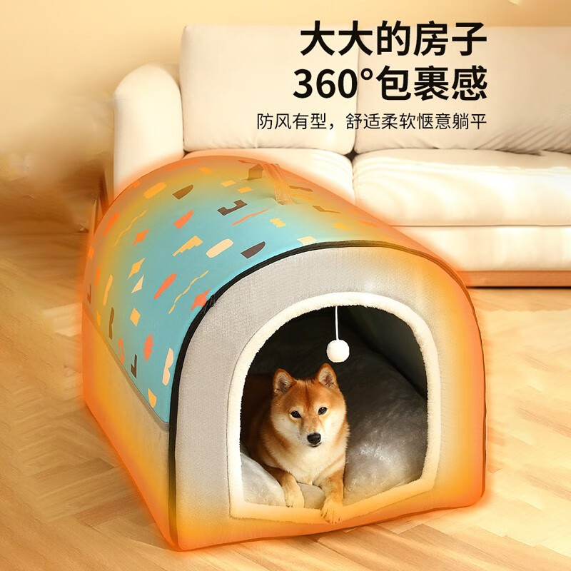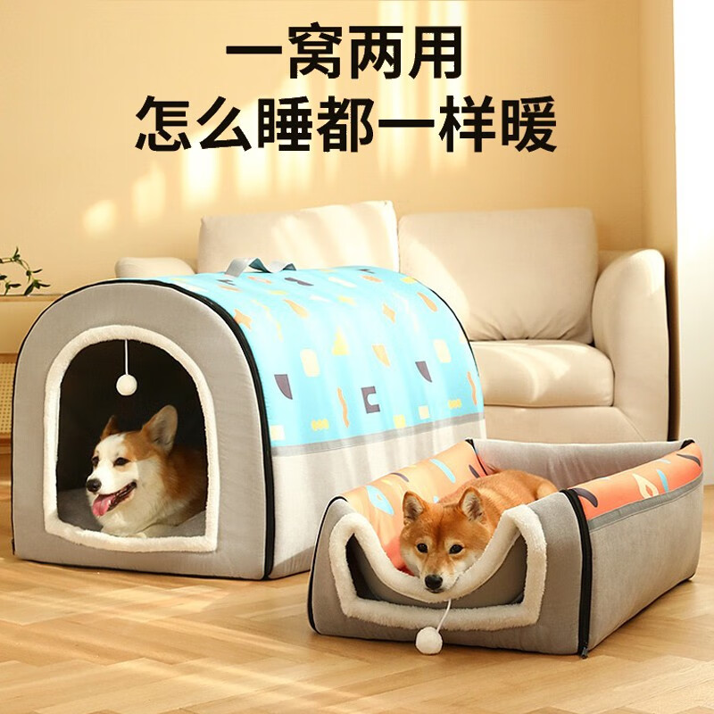出极狗窝四季通用大型犬狗狗床可拆洗猫房子狗屋宠物睡觉用品ZP9 【四季通用】蓝灰拼接色 小号【适合5斤内宠物】