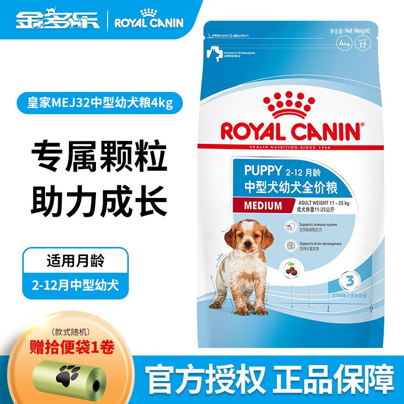 皇家(ROYAL CANIN)MEJ32中型幼犬粮4kg 狗狗拾便袋
