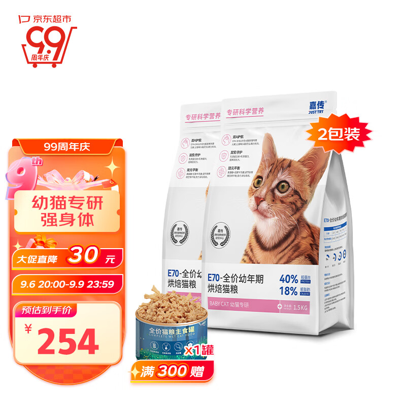 嘉传E70烘焙全价无谷全阶段幼猫奶糕专用4-12月布偶蓝猫金渐层猫主粮 3kg 2包装 2包试吃【九成选择】