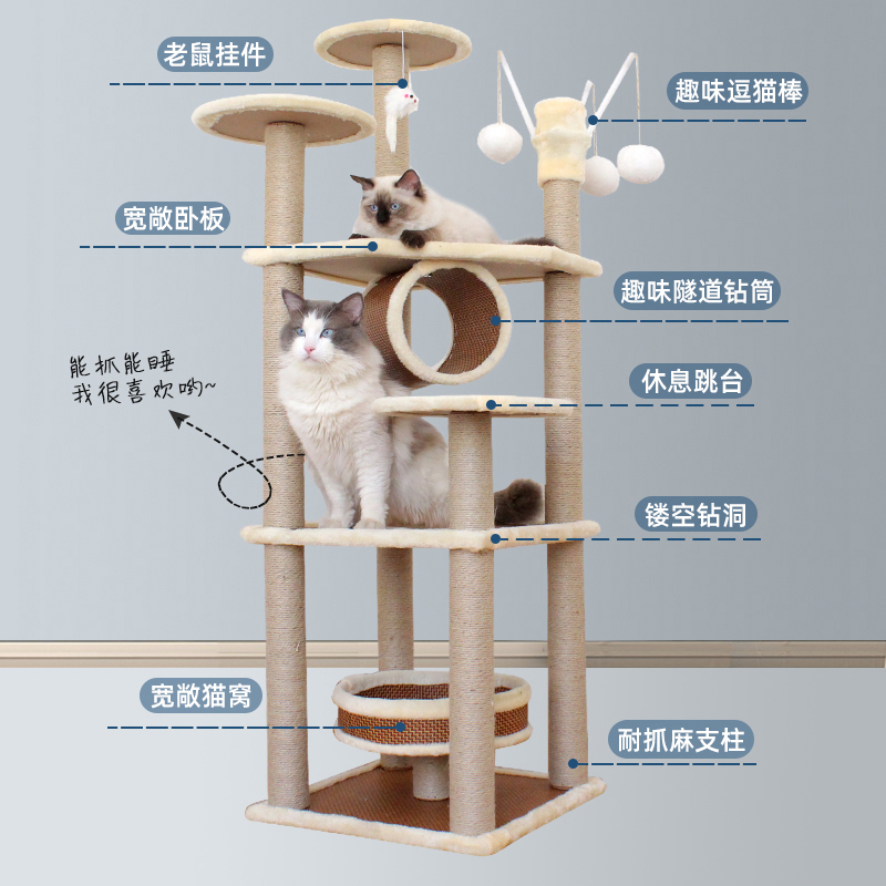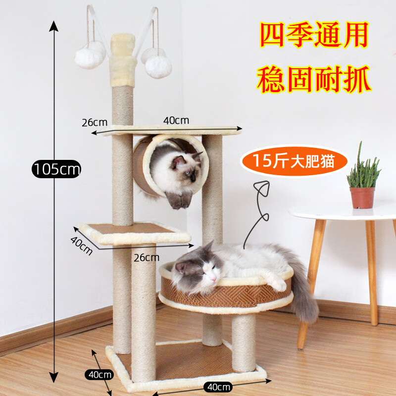 猫窝四季通用猫爬架猫窝猫树一体猫抓柱猫咪架子四季通用猫抓板猫跳台 咖色款【适合10斤内】