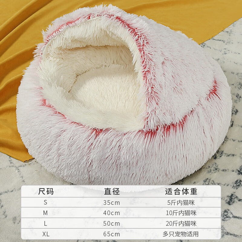 KimPets猫狗窝冬天大猫小型犬半封闭式宠物床秋冬季睡觉保暖加厚垫子猫舍猫屋宠物用品 【樱花粉】毛绒款 【直径40CM】适用10斤宠物