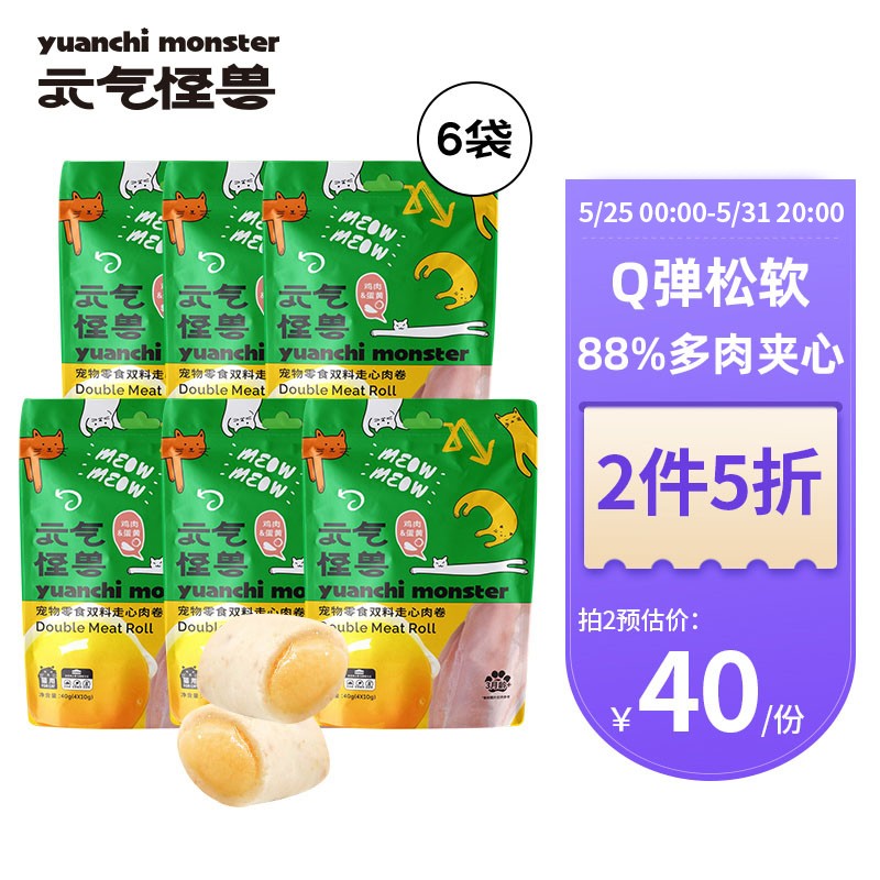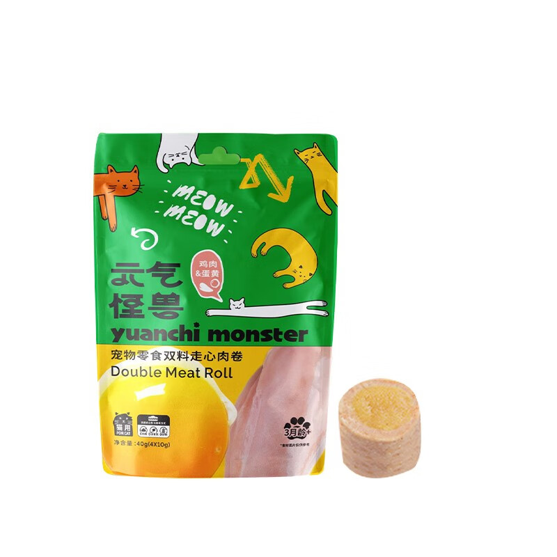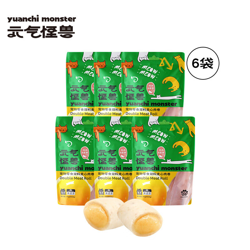 元气怪兽 猫零食冻干猫条营养双料肉卷夹心冻干 鸡肉 蛋黄240g(40g*6袋)