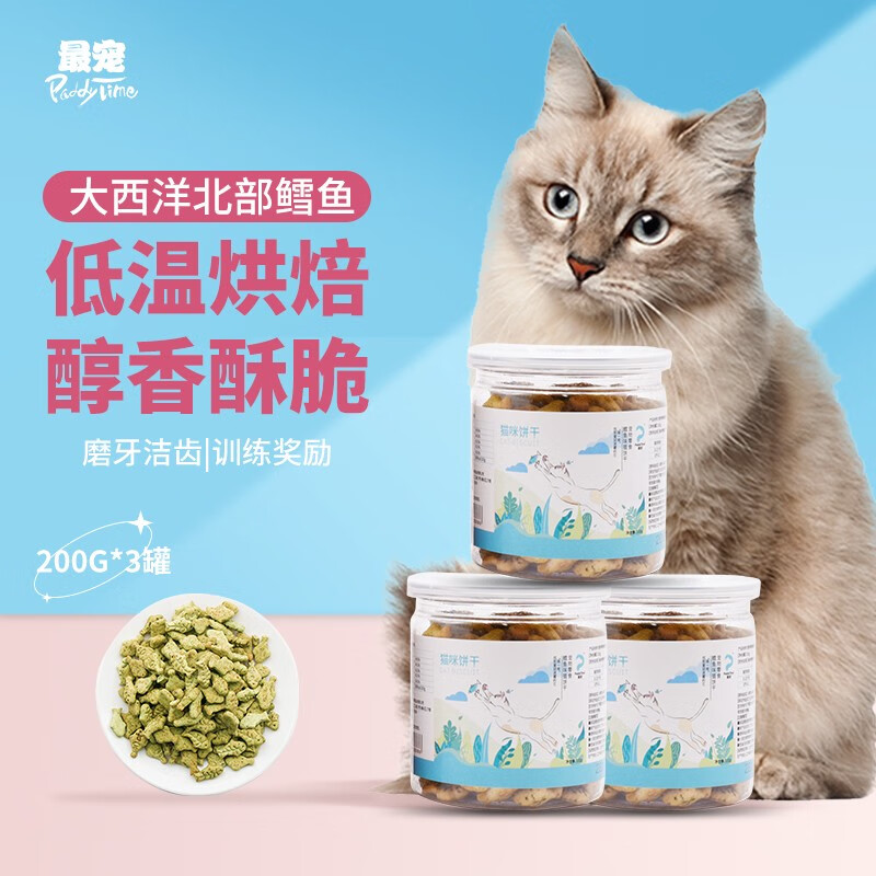 最宠(PaddyTime)猫零食 鳕鱼味猫草薄荷猫饼干100g*3罐 宠物猫咪食品成幼老年主食猫粮磨牙洁齿毛球