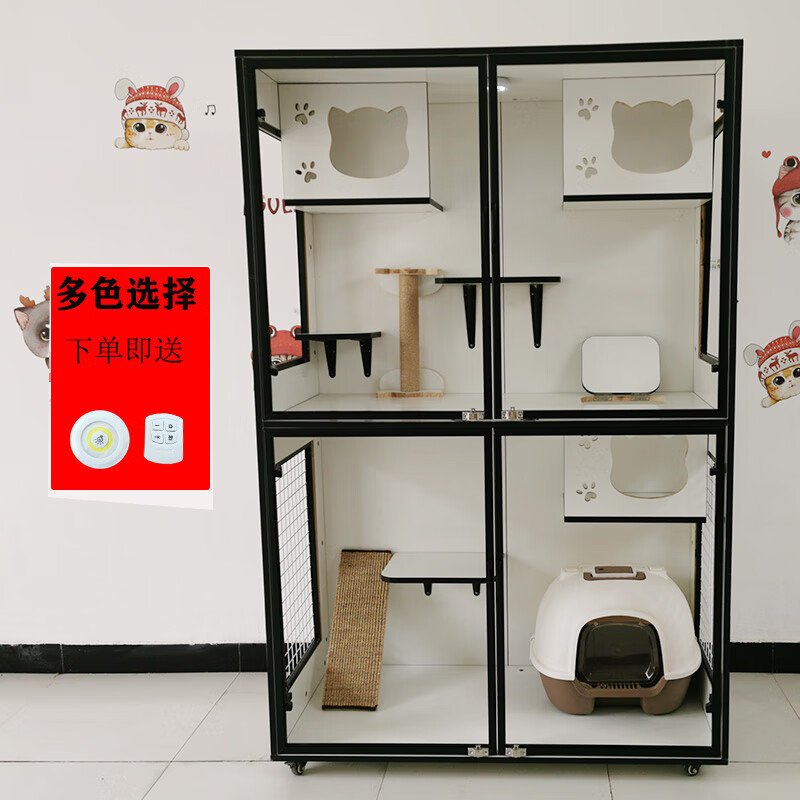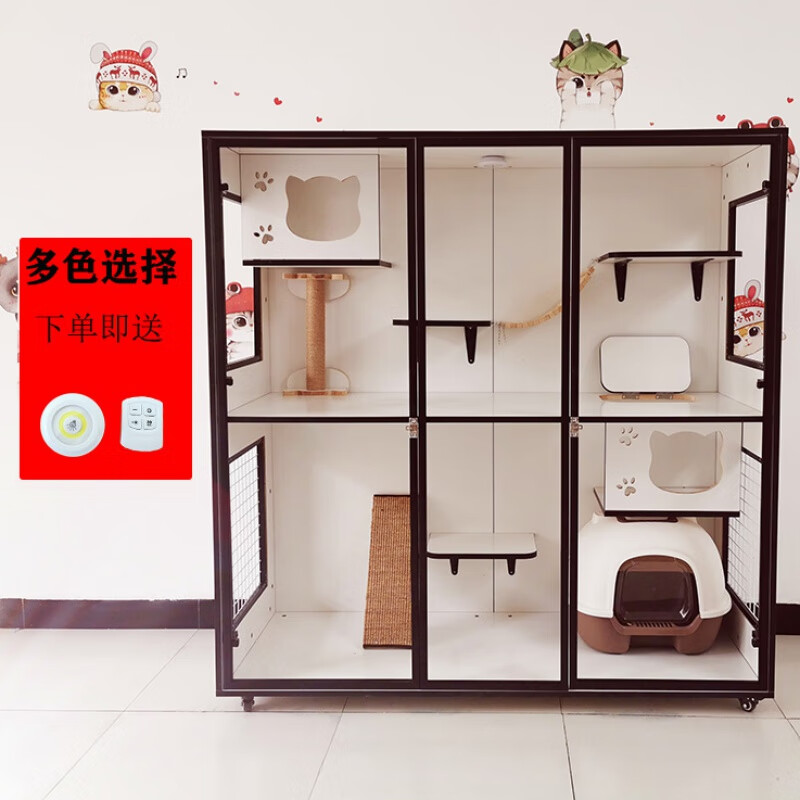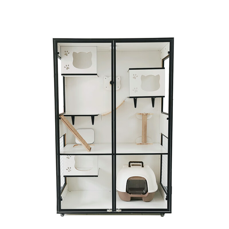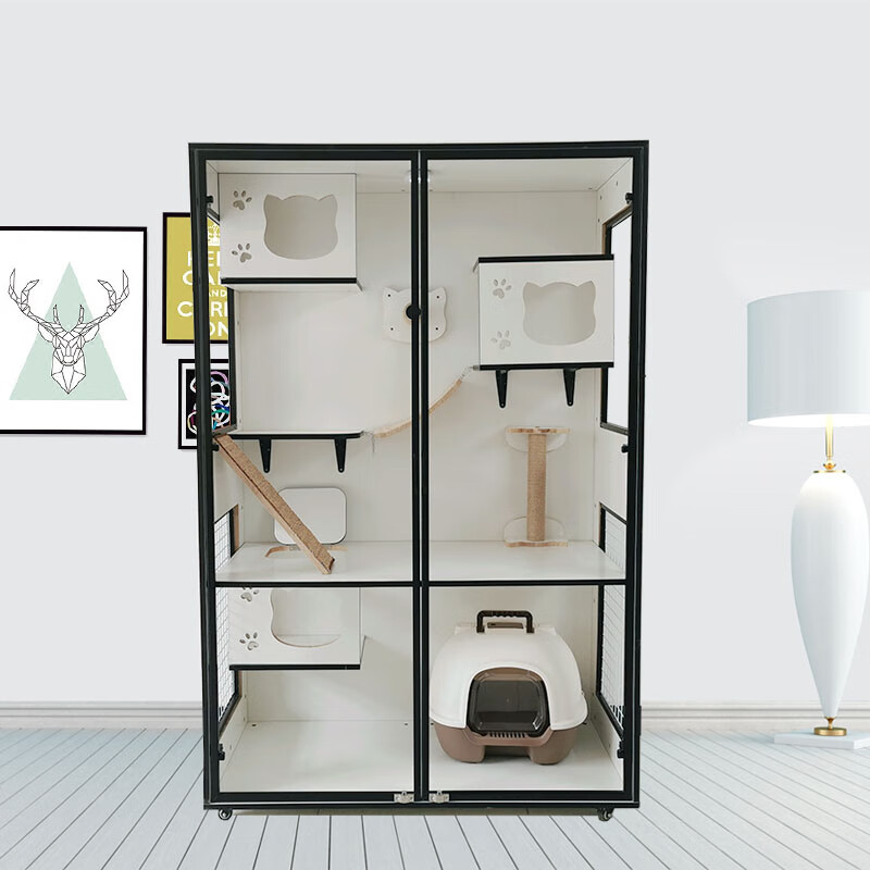 小米城堡 猫笼子木质猫别墅 大型猫舍家用猫咪柜子大空间猫屋猫房猫窝 长60 深60 高60 自行安装