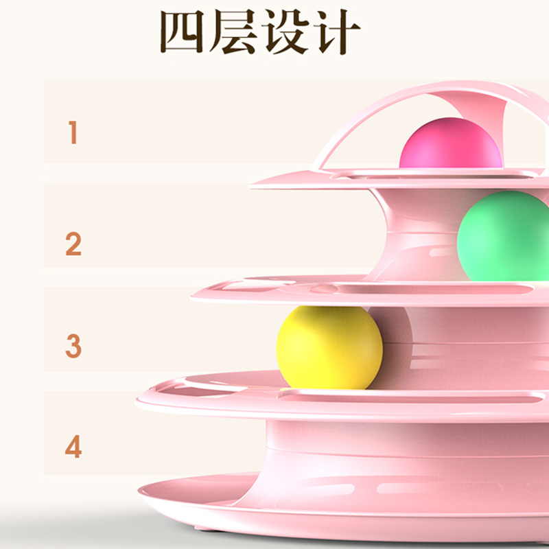 疯狂的小狗 猫玩具猫转盘玩具球宠物猫抓板玩具猫咪用品 四层猫转盘粉色