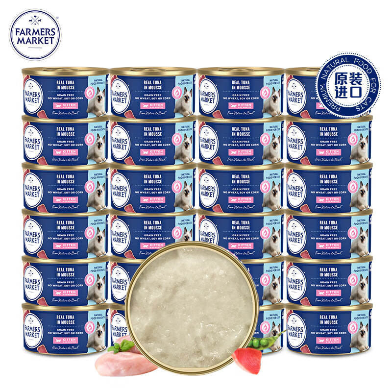 原装进口Farmers Market 蓝宝食 猫罐头幼猫慕斯吞拿鱼配方80g*24