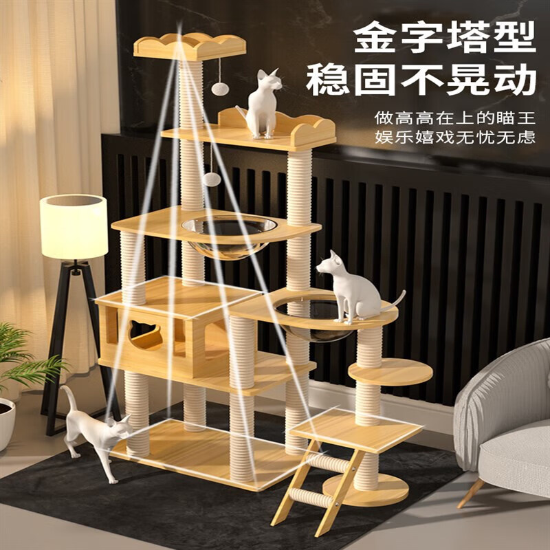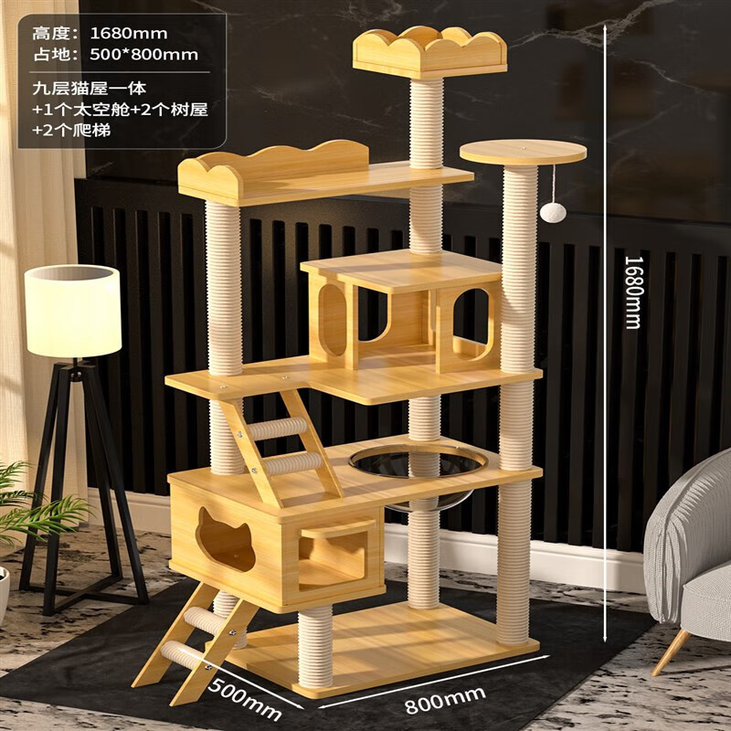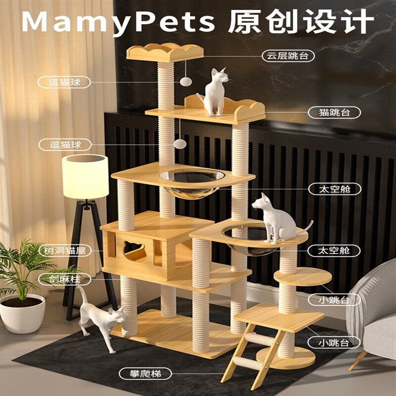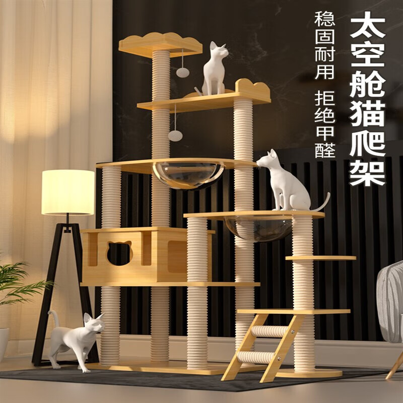 猫爬架猫窝猫树一体猫抓架实木跳台通天柱太空舱宠物用品 【天朝王宫】