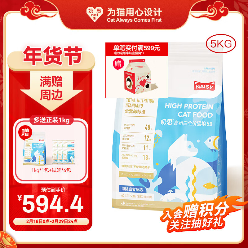奶思猫粮海陆盛宴配方5kg全价鸡肉三文鱼高蛋白成幼猫粮