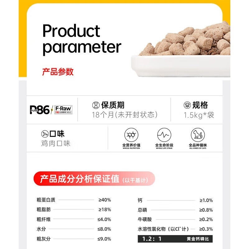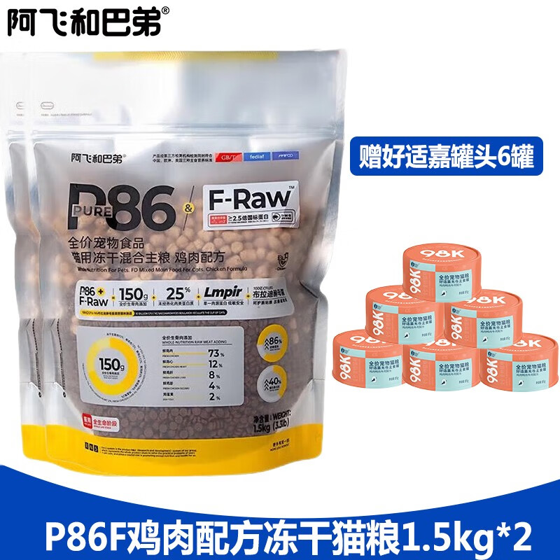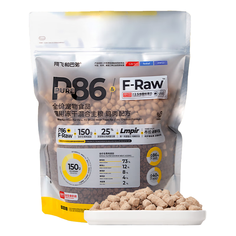 阿飞和巴弟P86F F-RAW鸡肉口味全价冻干生骨肉猫粮 成猫幼猫全期猫粮 P86F 1.5kg装*2包