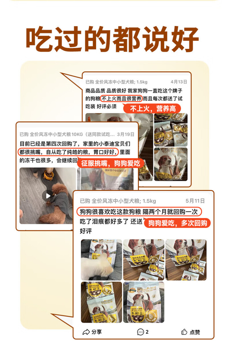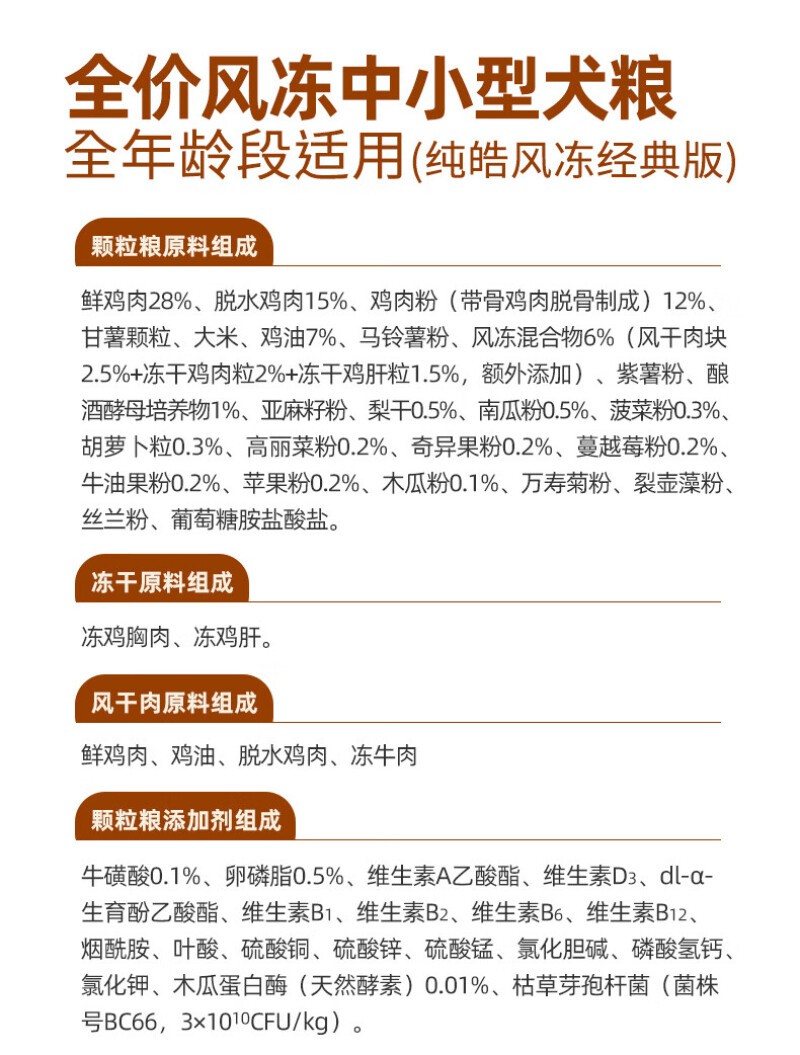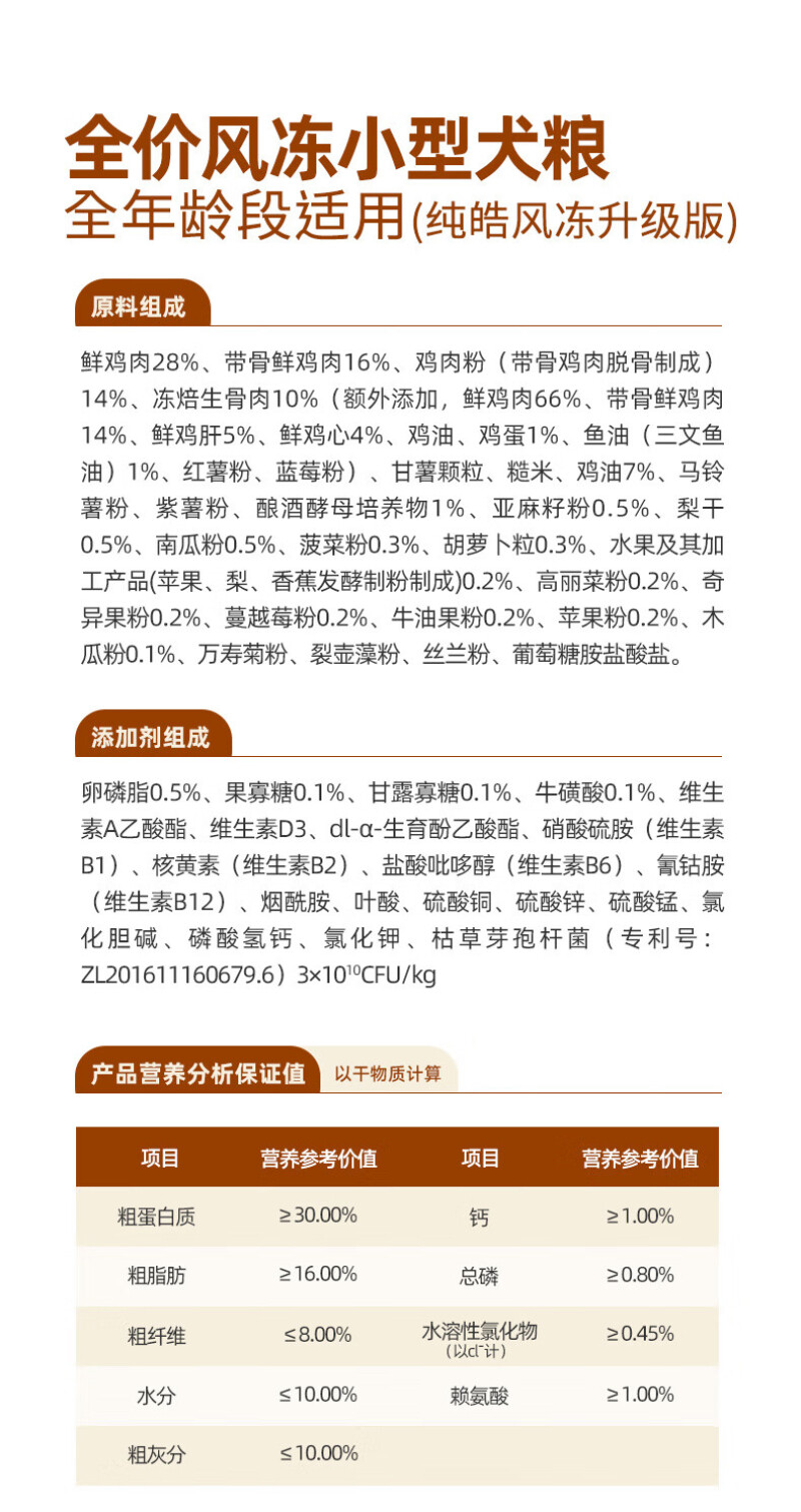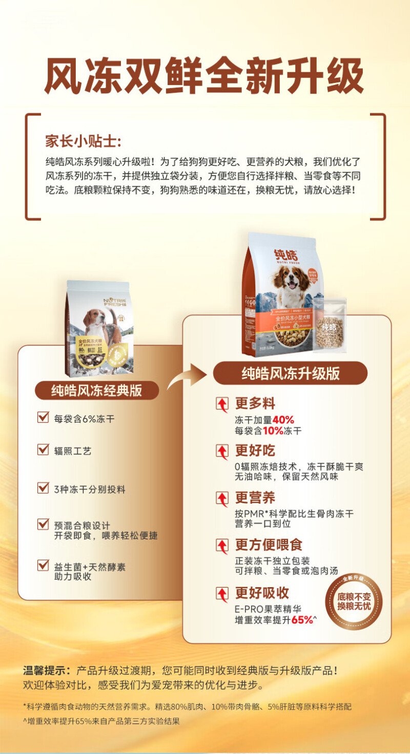 纯皓狗粮 全价风冻小型犬通用型狗粮30g/1.5kg