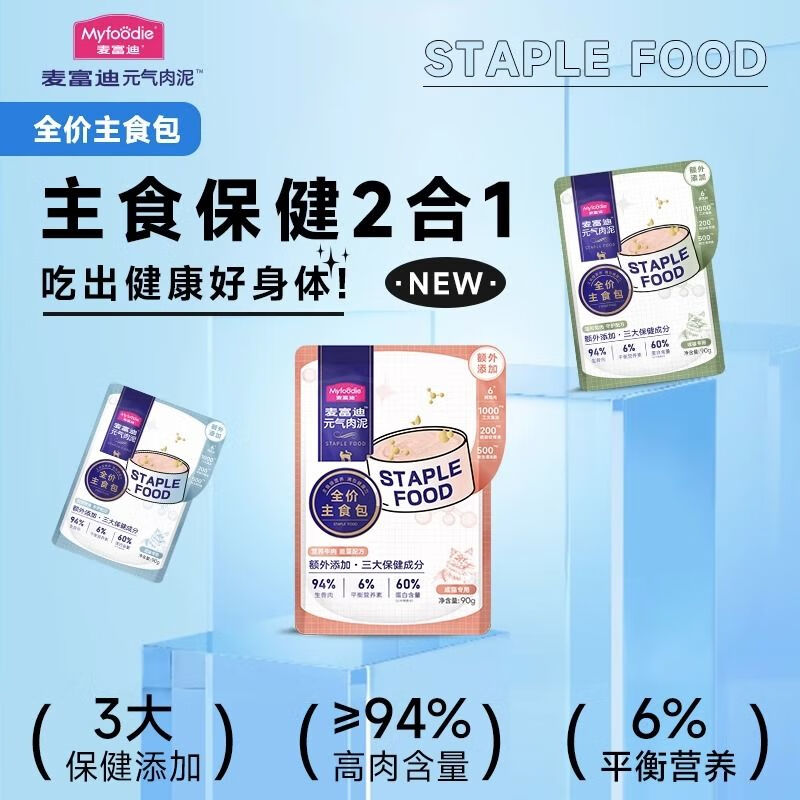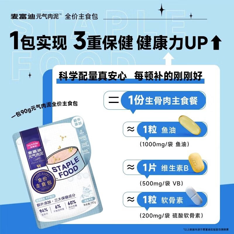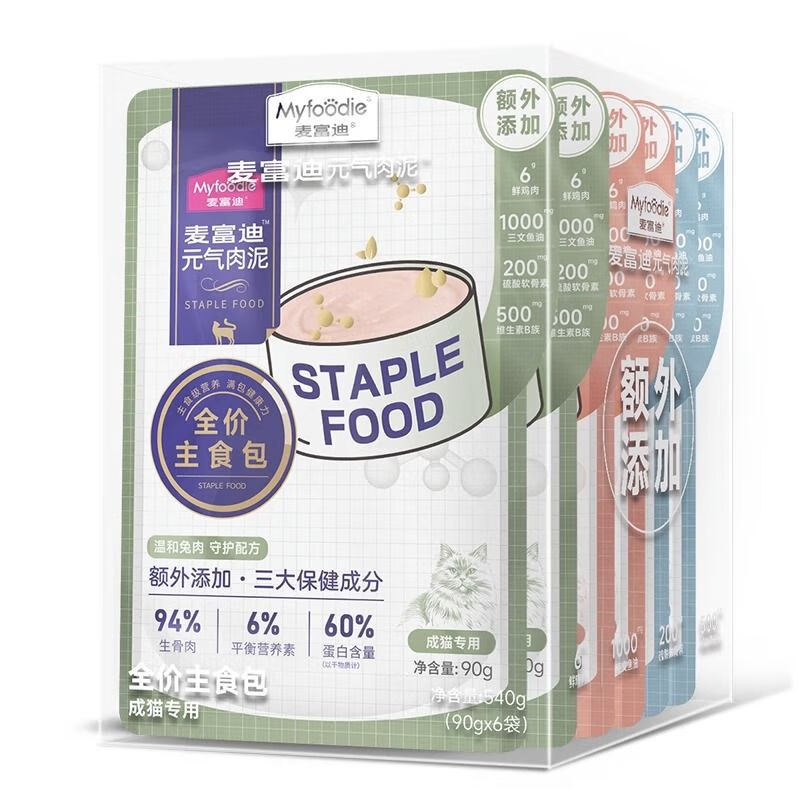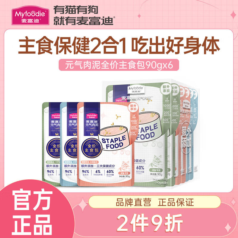 麦富迪全价元气肉泥主食包主食罐头猫条猫咪零食成幼猫湿粮90g*6 混合口味[鳕鱼 牛肉 兔肉] 540g[90gX6包]
