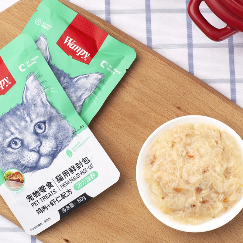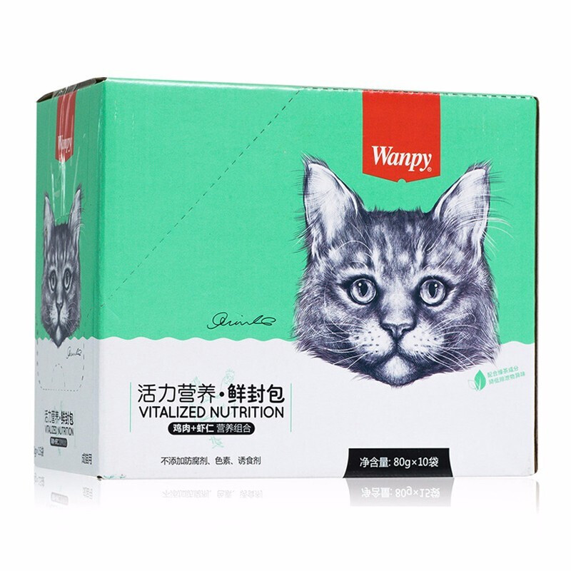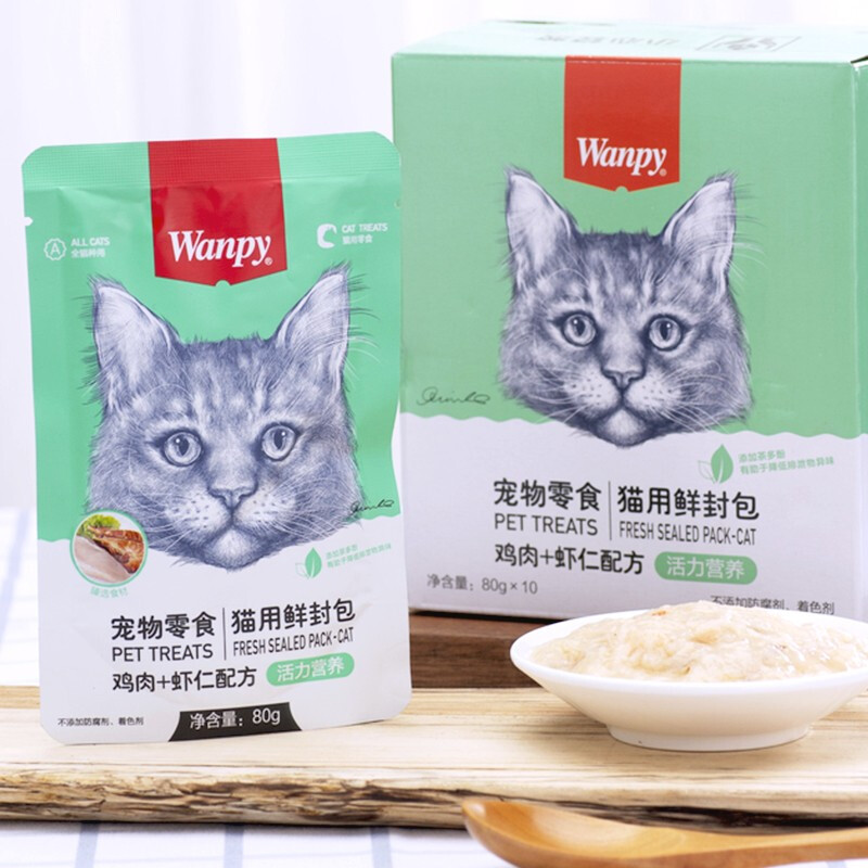 顽皮(wanpy)猫咪鲜封包活力营养宠物猫粮肉粒包猫湿粮猫罐头整盒 鸡肉 虾仁80g*10
