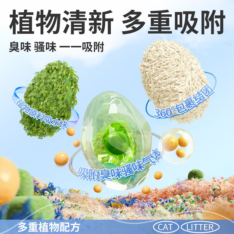 PIDAN皮蛋咖啡膨润土混合猫砂2.4kg除臭结团牢固