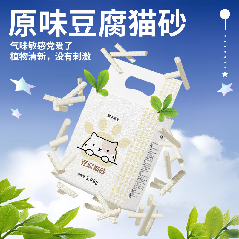 狮子医生豆腐猫砂快速吸收猫砂除味低尘速团可冲厕所猫咪用品 原味3.8斤