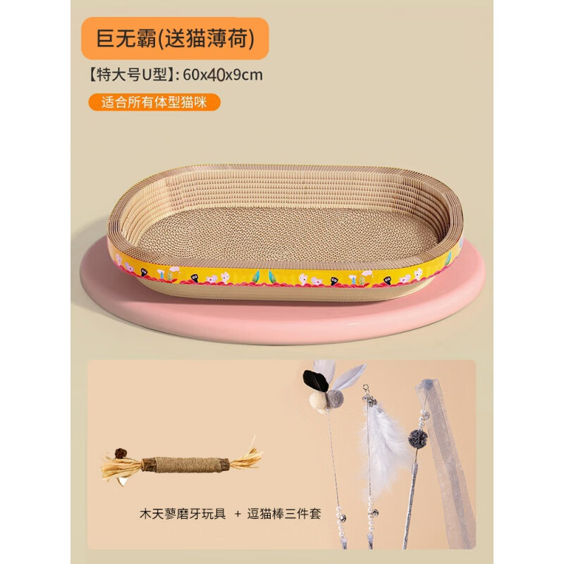猫抓板猫窝一体耐磨耐抓不掉屑圆形特大号瓦楞纸立式板盆猫咪玩具 巨无霸60cm 逗猫4件套