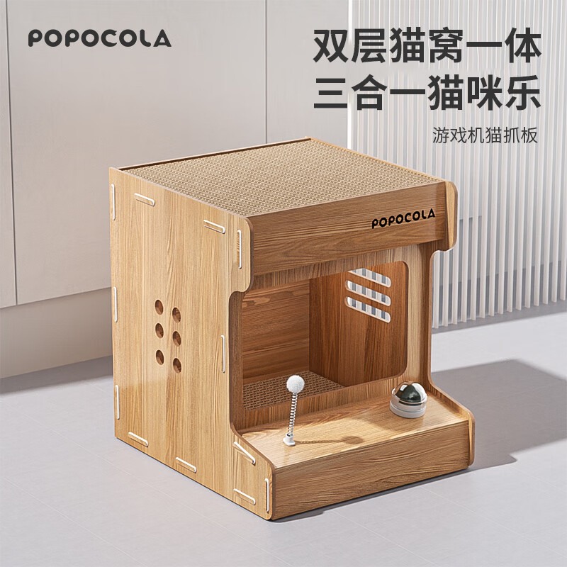 POPO游戏机猫抓板猫窝一体瓦楞纸箱屋猫咪耐磨不掉屑玩具双层房子 游戏机猫抓板窝