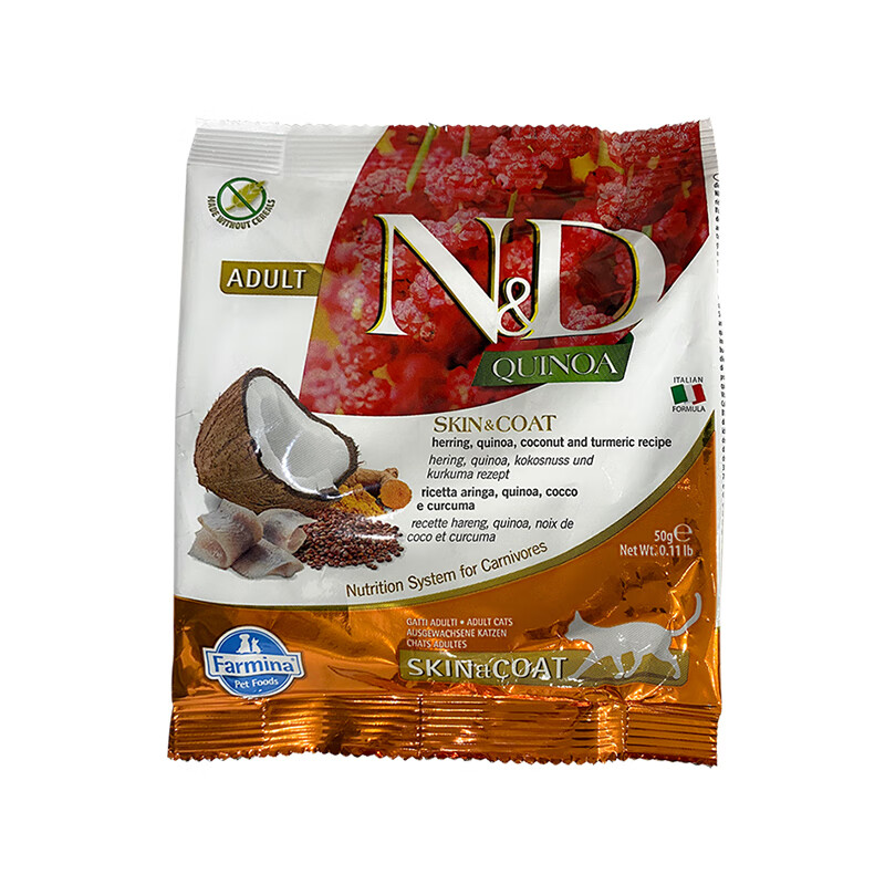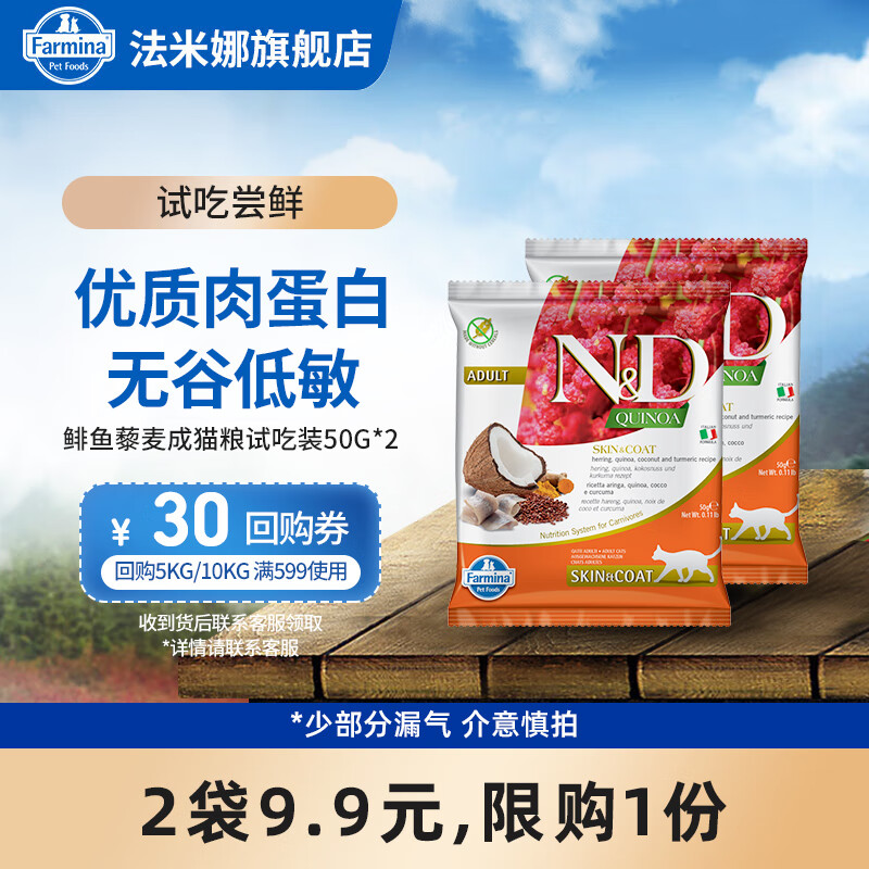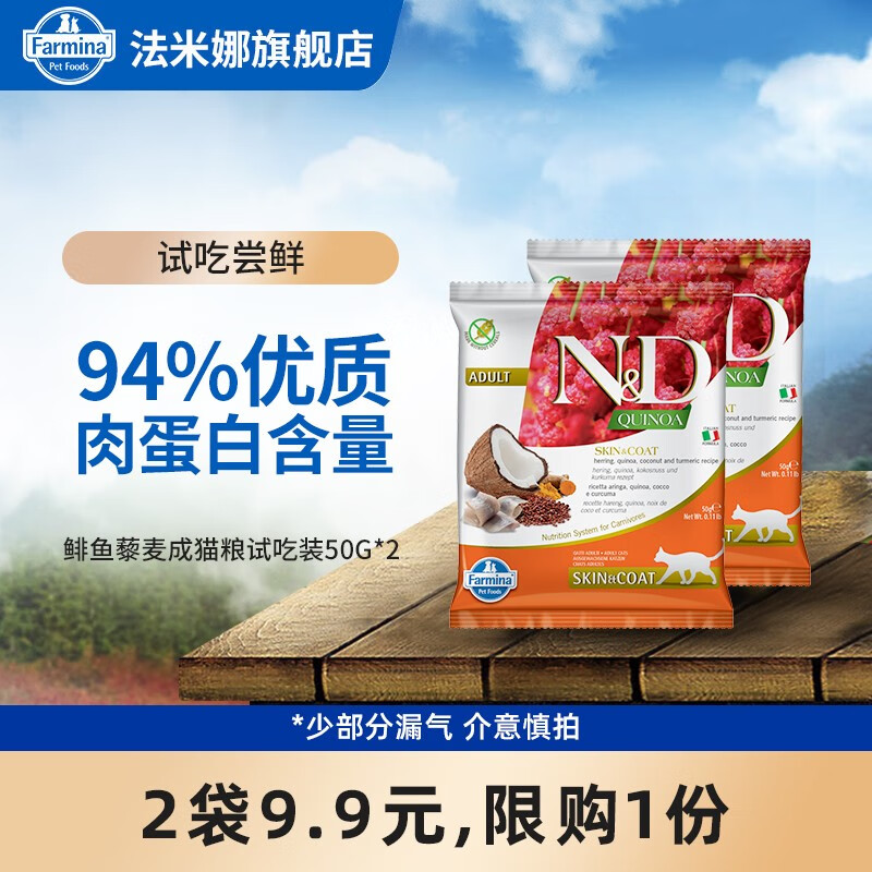 法米娜Farmina进口成猫粮无谷鹌鹑南瓜鸡肉石榴猪肉苹果试吃小袋装 鲱鱼藜麦50g*2