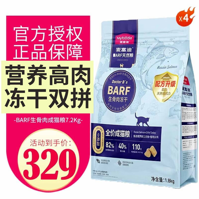 麦富迪(Myfoodie)barf 猫粮生骨肉冻干双拼粮鲜肉无谷营养通用粮 三文鱼火鸡成猫7.2kg
