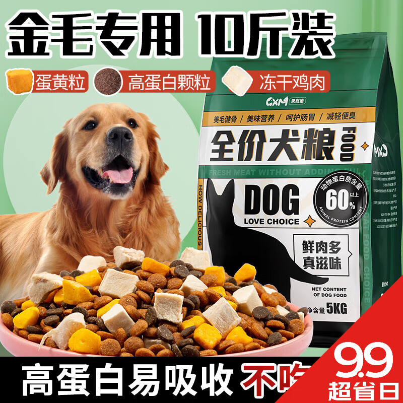 疯狂小狗品质德国品质 金毛狗粮专用粮冻干10斤装幼犬成犬吃的大型犬大包 蛋黄 高蛋白颗粒三拼粮 ( 美 0lb