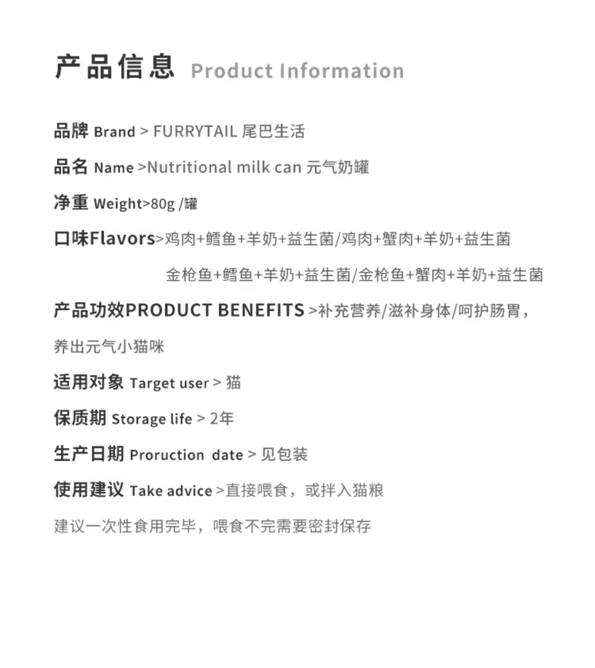 尾巴生活 猫咪罐头元气奶糕幼猫慕斯湿粮 80g