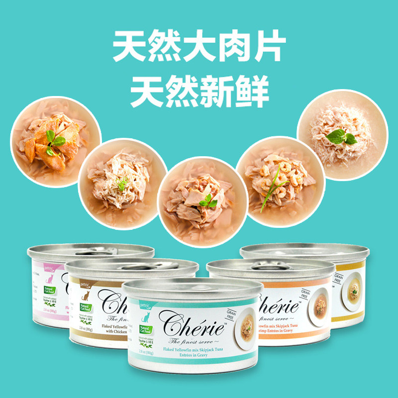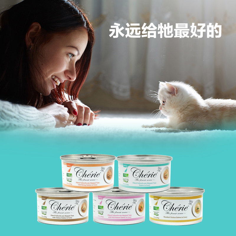 泰国Cherie法丽猫罐头80g*24盒 猫零食金枪鱼鲣鱼鸡肉整箱装