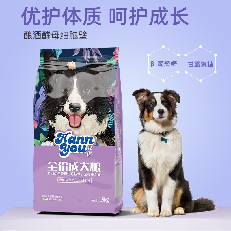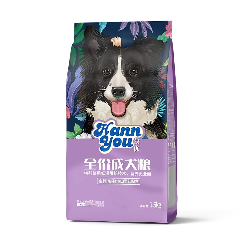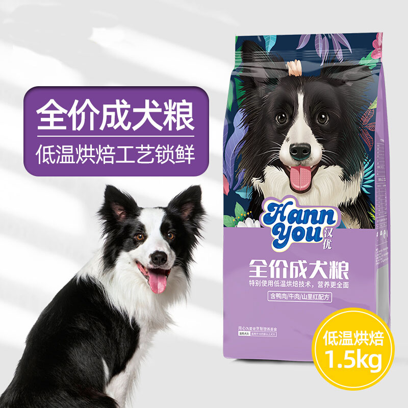 汉优 低温烘培成犬狗粮 泰迪柯基拉布拉多金毛法斗比熊通用全价狗粮 成犬1.5kg
