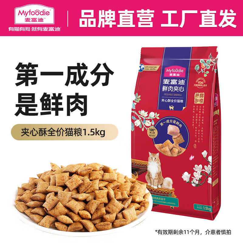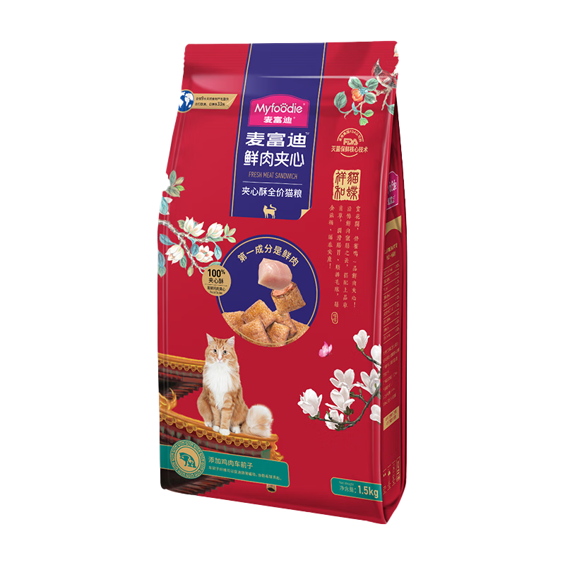 麦富迪 猫粮 鲜肉夹心酥 鸡肉车前子1.5kg